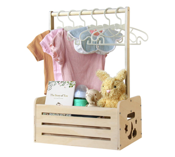 Armario de madera para Baby Shower, cesta de regalos para Baby Shower, caja de bienvenida de madera para bebés, estante para ropa con 10 perchas para ropa