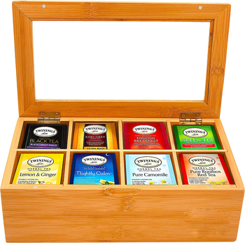 Organisateur de rangement de boîte à thé en bambou naturel-support de sac à thé à 8 compartiments avec fenêtre en acrylique transparent-bois naturel