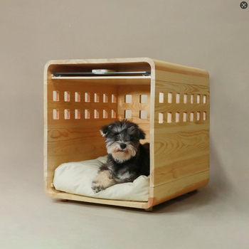 プレミアムウッドドッグクレート-収納するホワイトメタルドア-素晴らしい気流を備えた自然な書斎-シームレスなデザインはドッグクレートエンドを兼ねる
